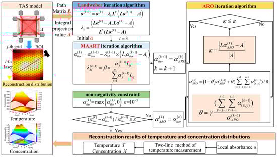 - Li, N.; Lv, X.; Weng, C. Investigation of Self-Adaptive Algebraic Tomography for Gas Reconstruction in Larger Temperature Range by Multiple Wavelengths Absorption Spectroscopy. Chin. Opt. Lett. 2014, 12, 121103. [Google Scholar] [CrossRef]