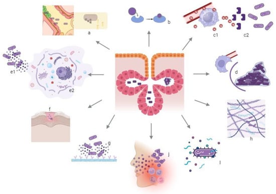 The virulence ability comprises several molecular mechanisms that microorganisms use to infect the host cells and tissues. These virulence factors, summarized in Table 1, are associated with bacterial adhesion and tissue invasion/degradation of the host tissues, allowing the microorganism to overrun the host’s immune system and antibiotic treatments [3].