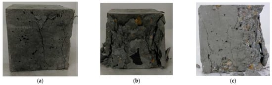Test block destroyed forms. (a) C30; (b) C40; (c) C50.