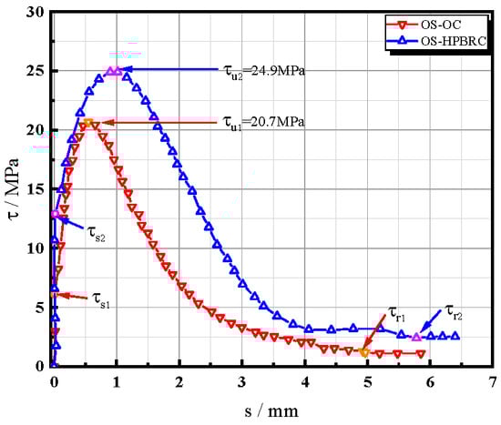 It can be seen from Figure 13 that the peak bond strength is close to the ultimate bond strength, that is, τ = τu(s1 < s ≤ s2). The amount of slippage in the peak segment is Δs = s2 − s1. It can be found from the test data that the value of Δs is always between 0.1 and 0.3 mm. Therefore, it is taken as 0.2 mm in this article.