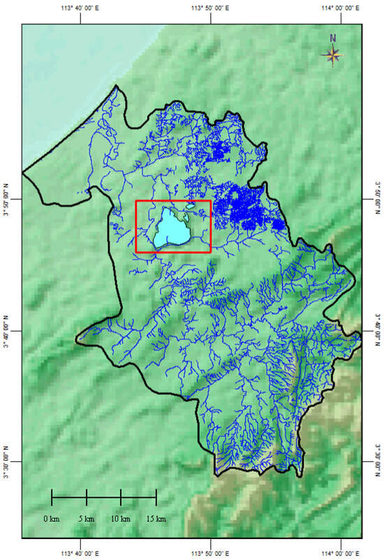 The drainage system is critical in the development and evolution of the karst features. Water–rock interactions will either enlarge the fractures via dissolution or seal the fracture aperture through precipitation. As a result, the fracture network complexity in the karstified carbonate is influenced. Hence, the surface drainage in the Niah River Basin was mapped using [59] and satellite images to establish the interaction between the Niah–Subis Limestone build-up and the surrounding drainage system. The map of the drainage system is shown in Figure 3.