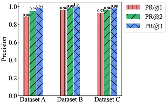 In this subsection, we discuss the effectiveness of Anomaly Microservice Locator. In Figure 3, we present the performance of Hi-RCA in anomalous microservice location in different datasets. It shows that Hi-RCA can achieve almost 90% in terms of , it can effectively locate all root causes in the top three anomaly services, and its performance achieves almost 100% in terms of .