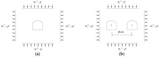 - Cai, H.; Lu, A.-Z.; Ma, Y.-C. Analytic stress solution for a circular tunnel in half plane with a concentrated force. Math. Mech. Solids 2019, 24, 3862–3879. [Google Scholar] [CrossRef]