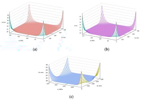 To check the dependence of stress on the geometric parameters of the structure, regression analysis will be used with the compilation of a quadratic regression Equation (2) and the subsequent proof of its suitability [43].