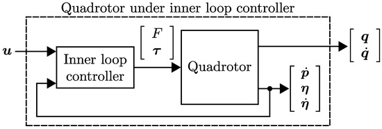 A graphical representation of the quadrotor dynamics (1)–(2) under the inner loop controller (3)–(5), which result in (6), is provided in Figure 1.