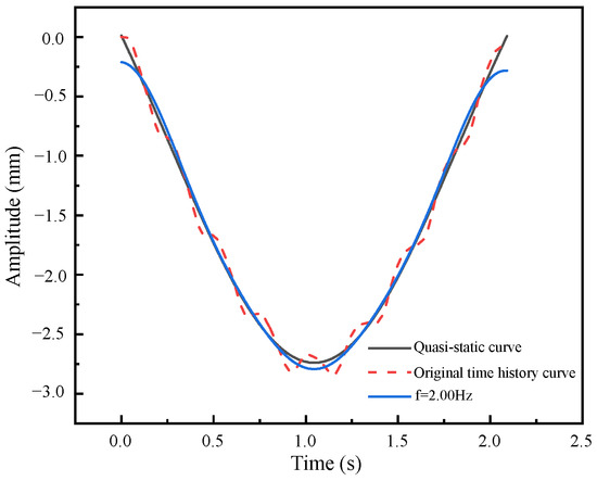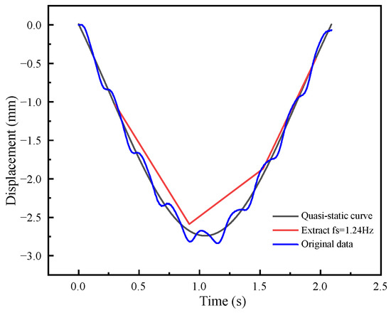 The high-frequency components are removed by low-pass filtering, and the frequency-domain signal is converted into the time-domain signal and compared with the quasi-static curve, as shown in Figure 14.