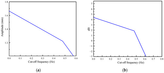 In conclusion, this article defines the cutoff frequency of the structural response signal of a bridge. The cutoff frequency is defined as the extent to which the deflection response efficiently functions within a particular frequency range, contingent upon the structural response undergoing a specific amplitude change and meeting the effective resolution criteria. This is specifically observed through the Fourier transform of the response time-history curve, which allows for the determination of the frequency at which the signal amplitude gain reaches −3 dB, thus establishing the “cutoff frequency” of the signal. Furthermore, the conventional approach for selecting the cutoff frequency may result in inaccuracies during signal decomposition. A proposed method is introduced to enhance the accuracy of selecting the cutoff frequency for signal decomposition. This method utilizes a power spectrum-based approach to determine the appropriate acquisition frequency for the structure. The distinction lies in the fact that the reasonable value primarily reconstructs the quasi-static response signal of the acquired signal based on reliability theory [25,26], thereby approximating the peak point.