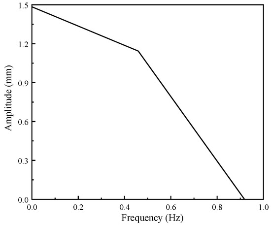 The signal acquisition interval of the bridge simulation analysis is 869 Hz. Now, the acquisition frequency is changed to 1.24 Hz, which is equivalent to reducing every 603 items of data in the original signal to one item of data, and then forming a new original signal. Through Fourier transform, the time domain signal is converted into the frequency domain signal, and the amplitude spectrum curve of the frequency domain signal is obtained, as shown in Figure 16.
