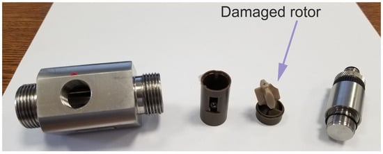 Figure 2, one can notice that the rotor of the flowmeter was damaged during a faulty maintenance procedure, leading to the damage of one of its blades.