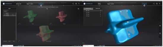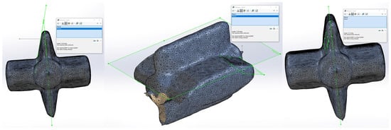The 3D scanning of the rotor was conducted in two distinct positions to enable comprehensive coverage of all surfaces. Subsequently, the two resulting geometries were aligned and transformed into a surface 3D model in “stl” format, as depicted in