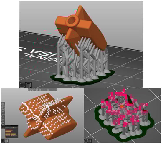 Figure 9 illustrates how support was manually applied to the rotor, with a high-density configuration to prevent deformation during the printing process [