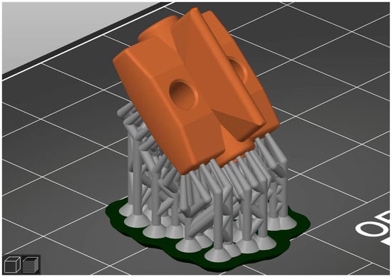 Figure 10). This step, the conversion into machine code within the 3D printer’s slicer software, is a critical one and necessitates careful planning during the creation of the accurate 3D model. The orientation of the part must ensure that no voids are formed due to internal cavities during printing, and additional support must be provided for the initial layers of the printed component.