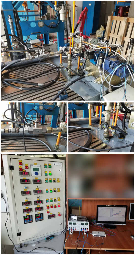 Figure 17)—a flowmeter with higher precision—and comparing the values transmitted by them using the “LabVIEW” (2019) data acquisition and processing software. The experimental setup included a variable flow control pump and control system, the remanufactured flowmeter, the reference flowmeter, a data acquisition board NI 6259, a 24 V power supply, a computing system, and a control panel with digital displays.