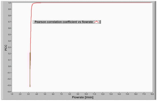 Figure 19 displays the linear correlation between the two flowrates. If the correlation coefficient is close to zero, it indicates a lack of significant linear correlation between the two variables. Conversely, a correlation coefficient close to −1 or +1 signifies a strong linear correlation between the variables. The closer the correlation coefficient is to −1 or +1, the stronger the correlation is.