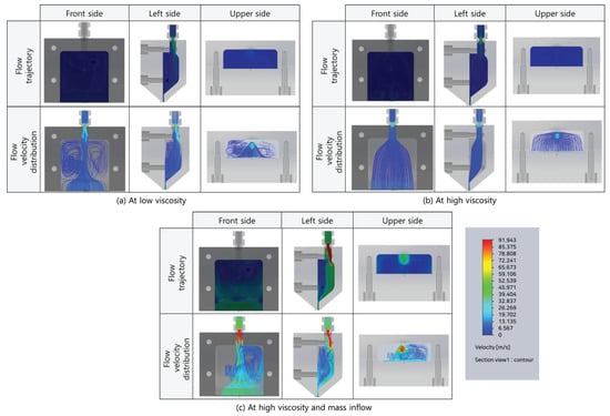 Flow trajectory and velocity distribution according to viscosity conditions.