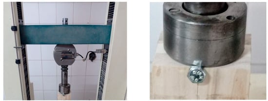 After preparing the CLT panel, specimens with dimensions of 15 cm × 8 × cm × 6 cm (length × width × thickness) were cut from the panel for the embedment strength test (Figure 2). A lag screw (s) with a diameter of 8 mm was used as a fastener. The characteristics of the fastener are detailed in Table 2.