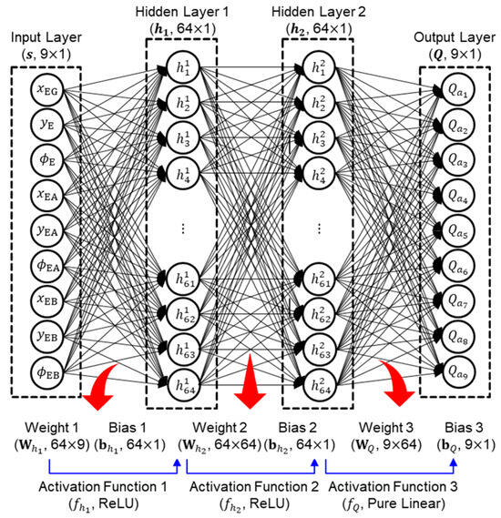 denotes the state–action value function. A state–action value function that adopts an artificial neural network is called deep reinforcement learning. Because the artificial neural network contains the weights, we denote it again as