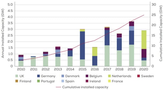 - National Wind Energy Associations. Offshore Wind in Europe—Key Trends and Statistics 2020. Report 2020. Available online: https://windeurope.org/intelligence-platform/product/offshore-wind-in-europe-key-trends-and-statistics-2020/ (accessed on 29 October 2023).