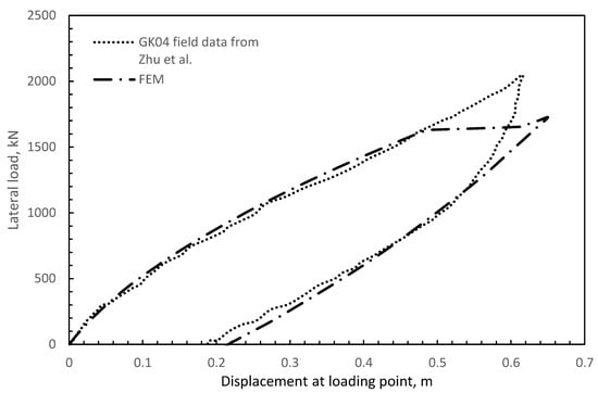 Load displacement curve using Hs undrained A parameters, GK04 field data from Zhu et al. [].