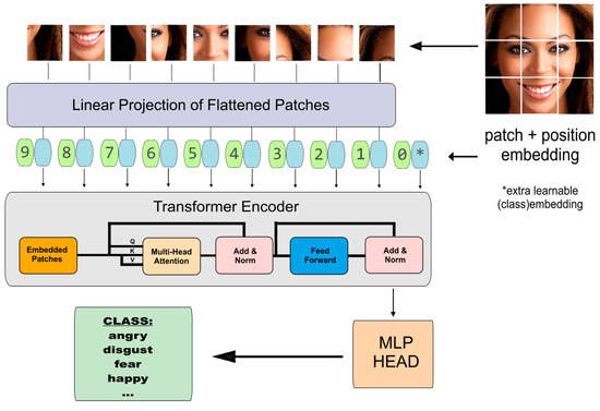 where, is the positional embedding matrix, is a flattened vector of image patches, and is the class embedding vector.