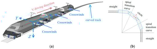 - Zhai, W.M.; Yang, J.Z.; Li, Z.; Han, H.Y. Dynamics of high-speed train in crosswinds based on an air-train-track interaction model. Wind Struct. 2015, 20, 143–168. [Google Scholar] [CrossRef]