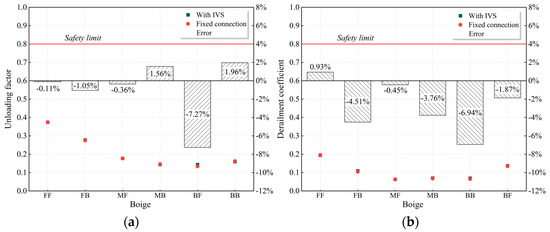 - Considering the IVS will reduce the unloading factor when passing a curve during deceleration under crosswinds. The BF bogie has the greatest reduction, of which the unloading factor is reduced by 3.38% and the derailment coefficient is reduced by 5.56%. Furthermore, the maximum value of lateral acceleration in the middle car is reduced by 49%. For the car-body motion angle, the head car and tail car are insensitive, but the pitch angle of the middle car is increased by 8.11% and the yaw angle is reduced by 14%. Taking into account the IVS, vibrations in the train car are reduced during operation. The level of reduction varies from carriage to carriage.