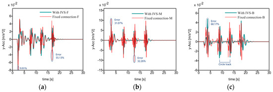 - Considering the IVS will increase the unloading factor when passing a curve during acceleration under crosswinds. The BF bogie has the greatest increase, of which the unloading factor increases by 7.27%. The derailment coefficient of FB, MB, and BB bogies increases by 4.51%, 3.76% and 6.94%, respectively. Moreover, the maximum value of the lateral acceleration of the head car when driving out of the spiral transition curve track is reduced by 55.13%, and the middle car is also reduced by 32.26% when driving out of the circle track. However, the maximum value of the lateral acceleration of the tail car increases by 68.17% when entering the spiral transition curve track. These results suggest that considering the IVS effectively reduces the maximum value of the lateral acceleration of the vehicle when passing the transition areas of the curved track, especially for the middle car.