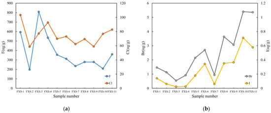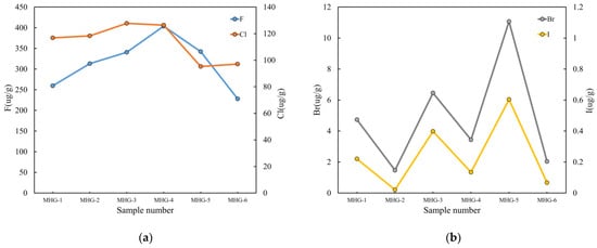 Halogen anomaly in the soil of MHG: (a) F and Cl anomaly in the soil of MHG; (b) Br and I anomaly in the soil of MHG.