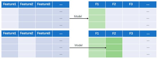 In the data generation algorithm, first, in the known data samples with certain features, a feature in the data sample is designated as the label, while the remaining features are treated as elements of the new feature vector to form new training samples. Based on the new training samples, data are randomly sampled and recombined by analyzing the correlations between various features, thus obtaining feature values for n features. Finally, by selecting individual features, using Feature 1 as input to the model for training and obtaining output F1, and using Feature 2 as input to the model for training and obtaining output F2, after completing the sampling process for all indicators, a temporary data sample can be obtained, thereby obtaining a complete dataset. Its data distribution characteristics are similar to the original data and have good representativeness. As shown in Figure 2.