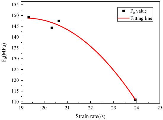 The fitting correlation coefficients were 0.960 and 0.989, respectively. Equations (12) and (13) were substituted into Equation (9) to obtain the modified equation of the statistical intensity constitutive damage model of the shale under different strain rates: