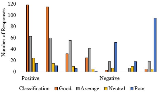 The graphical illustration in Figure 8 demonstrates that the content classified as ‘Good’ by the proposed DPMS receives a higher positive response, which results in a higher engagement in impression. It involves the brand value of the university. On the other hand, content classified as ‘Poor’ by the DPMS receives a higher number of negative reactions and marginal positive reactions. It causes less engagement and impression. It also negatively impacts on the brand value, and students become demotivated to submit admissions to the promoted university. The data presented in Table 5 and the graphical representation in Figure 8 strongly suggest that DPMS-guided promotional activities are more effective than randomly sharing content on social media. The average negative reaction reduction calculated by Equation (36) is 31.25%.