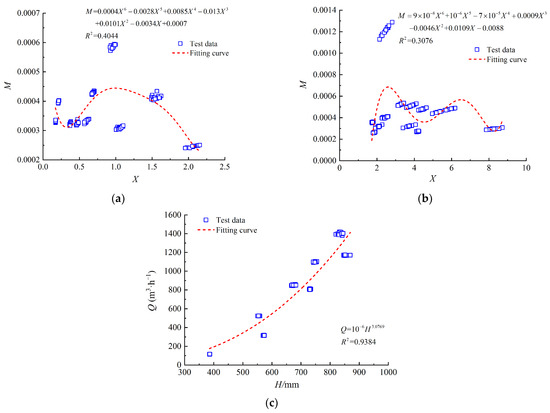 Fitting curves of the flow coefficient under different flow patterns: (a) free outflow with gate control; (b) submerged outflow with gate control; and (c) weir flow.