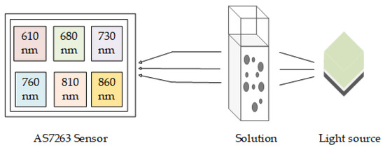 A milk solution is a scatterer, and the extraction of spectral information is complicated. According to the Beer-Lambert law, the spectral characteristics of milk change with its content. Figure 6 shows a schematic of the multi-wavelength data acquisition process.