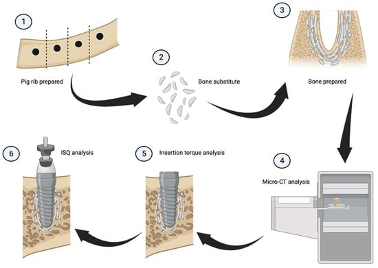 The present ex vivo rib bone model study presents promising evidence for the benefits of using xenograft bone walls in low-density-bone environments. The use of biomaterial particles improved implant stability. However, it is crucial to acknowledge some limitations. In an in vivo setting, factors such as bone remodeling and vascularization over an extended timeframe may impact the integration of xenografts and long-term implant stability [46,47]. Comparing different implant surface topographies and graft materials like allografts would help optimize techniques [10,34,44]. Most importantly, long-term experimental studies and human clinical trials evaluating feasibility, cost-effectiveness, and real-world efficacy are essential before widespread clinical adoption. While encouraging, these ex vivo results represent an early step, and further research is imperative to fully understand the potential of these interventions.