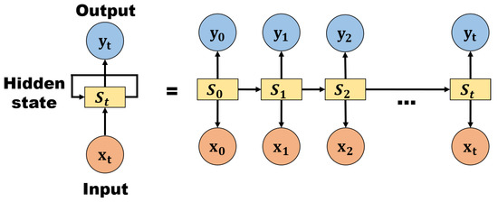 RNNs differ from traditional neural networks in that they use feedback loops. This means that the output from each layer is sent back to the RNN to influence the current stage’s results. RNNs are effective in classification analysis and working with time series data, allowing for nonlinear trajectory prediction and dynamic system modeling. These networks are frequently selected for processing sequential data. Figure 4 depicts an RNN network temporarily deployed to represent an element of the modeling string.