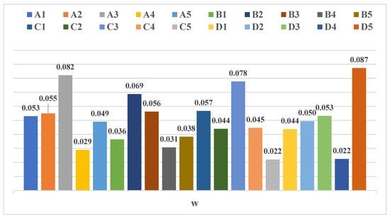 The relative weights of the four indicators can be obtained from Equations (12)–(14), as shown in Figure 3.