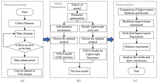 We proceed with our work according to the sequence of the workflow diagram in Figure 1. In it, Figure 1a represents the data processing stage, Figure 1b represents the model optimization stage, while Figure 1c represents the result analysis stage.