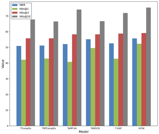 - The experimental results on three real-world datasets demonstrate that HCAE improves the predicting ability for missing facts, indicating that learning high-order connectivity and attribute information enhances the model’s TKGC capability.