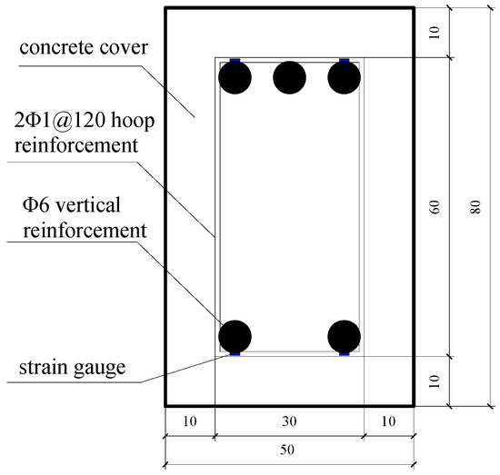 In this model test, when fy = fy’ = fmy = 100 N/mm2, M = 607.61 N·m, b = 50 mm, h0 = 69 mm, α1 = 1.0, ξb = 0.6, fc = fmc = 7.3 N/mm2 by means of Equation (26):