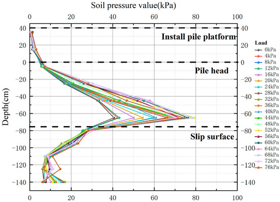 The distribution of soil pressure values obtained from the experiments is shown in the following Figure 10: