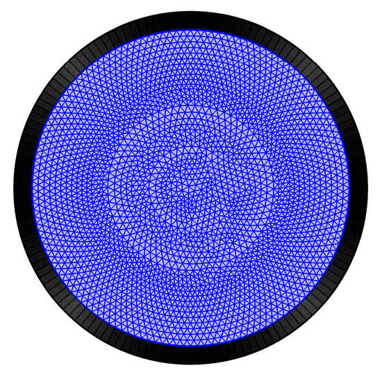 The inner part was water, and its physical field was set to be a “Pressure Acoustics” field. The wave equation for time-harmonic acoustic waves in 2D geometry is Equation (72),