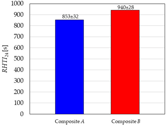 RHTI24 was measured for a heat flux density of 20 kW·m−2.