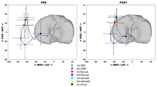 - Ruggeri, M.; Gill, H.S.; Leardini, A.; Zaffagnini, S.; MacLeod, A.; Ortolani, M.; Faccia, F.; Grassi, A.; Fabbro, G.D.; Durante, S.; et al. Superimposition of ground reaction force on tibial-plateau supporting diagnostics and post-operative evaluations in high-tibial osteotomy. A novel methodology. Gait Posture 2022, 94, 144–152. [Google Scholar] [CrossRef] [PubMed]