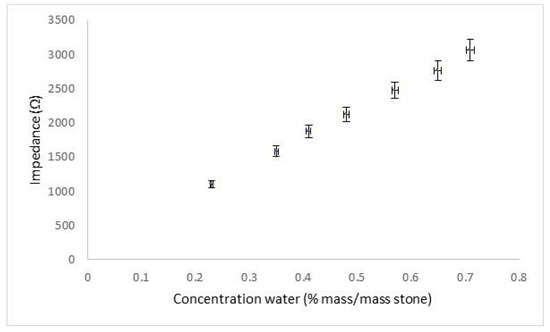 Measured impedance in Caenstone blocks with different weighed water contents.