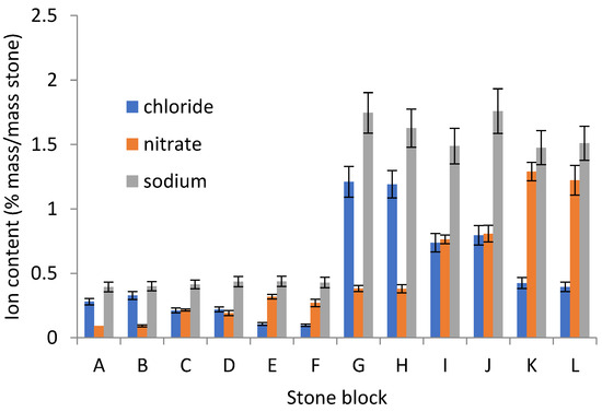 - BS EN 16455; Conservation of Cultural Heritage—Extraction and Determination of Soluble Salts in Natural Stone and Related Materials. British Standards Institute: London, UK, 2014.