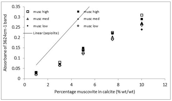 The ATR-FTIR was found to generate good-quality spectra from all samples. Muscovite has a very distinctive hydroxyl stretching band at 3624 cm−1 [29].