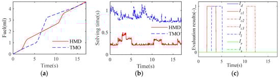 Fuel consumption and solving time of HMD and TMO. Evaluation results of different evaluation functions. (a) Accumulated fuel consumption. (b) Lateral acceleration. (c) Evaluation results.