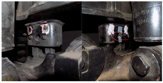 When marking the location of the installation of sensors on the bogie of the locomotive, the places most prone to deformation during the movement of the locomotive are considered. The locations of the sensors were chosen empirically [10]. The sensor installation sites are pre-cleaned with special equipment to a flat and smooth surface, and then the site is processed with sandpaper across the sensor installation to a slight roughness [11]. This work must be performed at all marked sites for installing sensors (see Figure 2).