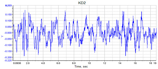 Figure 10, Figure 11 and Figure 12 show oscillograms of primary measurements of dynamic processes recorded while driving along a straight section.
