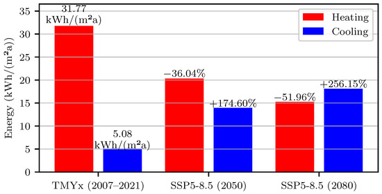 - Elnagar, E.; Gendebien, S.; Georges, E.; Berardi, U.; Doutreloup, S.; Lemort, V. Framework to assess climate change impact on heating and cooling energy demands in building stock: A case study of Belgium in 2050 and 2100. Energy Build. 2023, 298, 113547. [Google Scholar] [CrossRef]